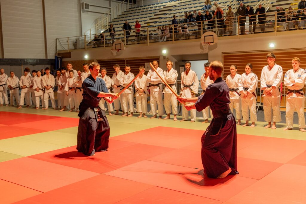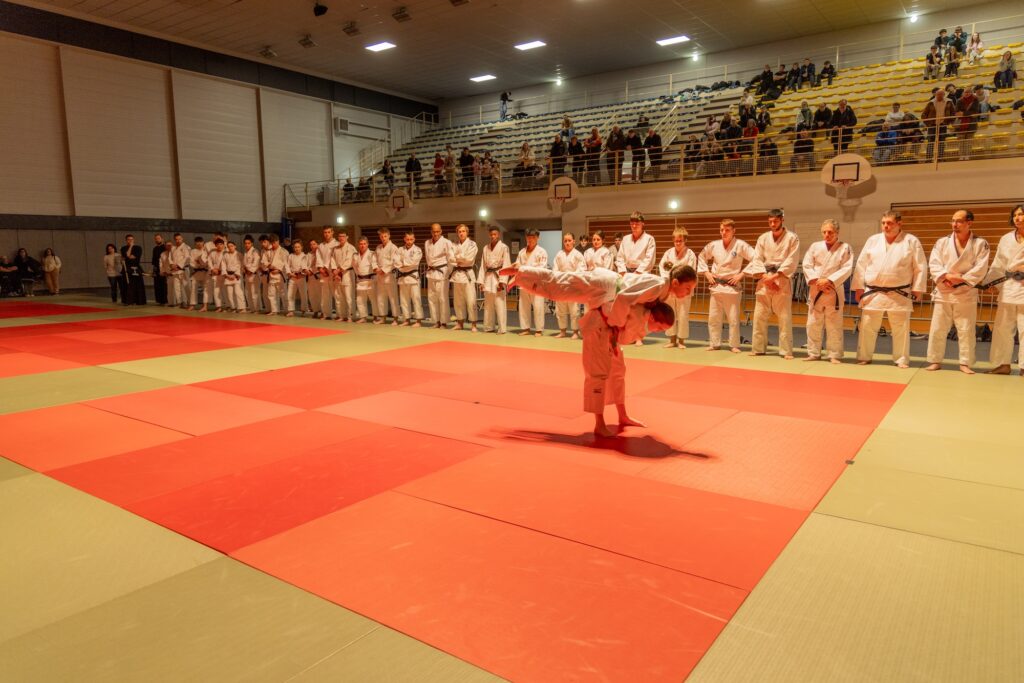 Afin d’illustrer la richesse et la diversité de nos disciplines, plusieurs démonstrations ont ponctué la soirée. Le public a notamment pu apprécier le Kodomo no Kata, présenté par de jeunes judokates, approche pédagogique du Nage no Kata adaptée aux plus jeunes. Les katas de passage de grades du kendo, discipline associée pleinement soutenue par le comité, ont également été mis à l’honneur. Enfin, le Ju no Kata, kata sans chute requis notamment pour le 5ᵉ Dan, a rappelé que la progression en judo repose avant tout sur la compréhension des principes, la souplesse et l’économie d’énergie.